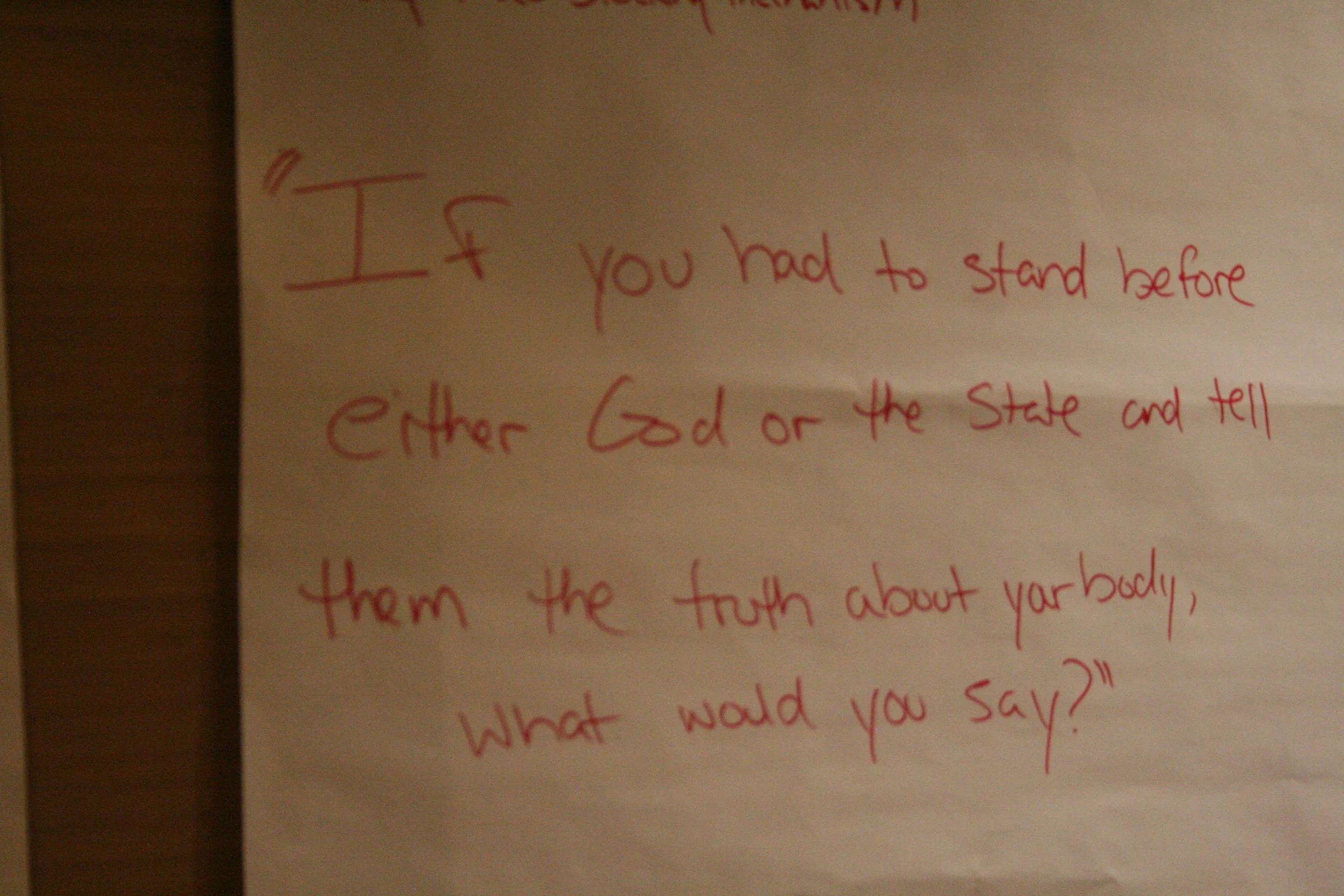 HAVE YOU BEEN VULNERABLE TODAY? Seasoned activists Rusti Miller-Hill, Dethress Ulmer-Lesley and Fortunata Kasege offered powerful views of the ongoing HIV crisis. The welcoming and participatory gathering found the women leading a discussion around intimate partner violence, incarceration re-entry, trauma, parenthood, faith and disclosure. Active in this conversation were ideas around unity, community and disclosure. Have you been vulnerable today? How have you been made vulnerable? How do you act in solidarity? What is at stake for you? What does love in action look like for you? I organized the event with members of the Positive Women's Network including Miller-Hill, Ulmer-Lesley and Olivia Ford, April 2015.