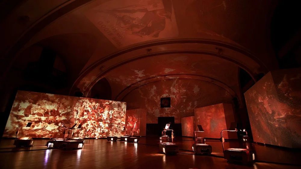 For Our Blood Can Save, Eagles builds on the work that has been done to lift the ban, as well as the history of The Major R. Owens Health & Wellness Community Center as a once active armory and the current home for the Brooklyn Community Pride Center.Upon entry, viewers are immersed in Illuminations, patterns and shadows of illuminated blood projected from a series of panels made by Eagles using donated blood from gay, bisexual, and queer men that could have been used to save lives but would be rejected due to the current policy.